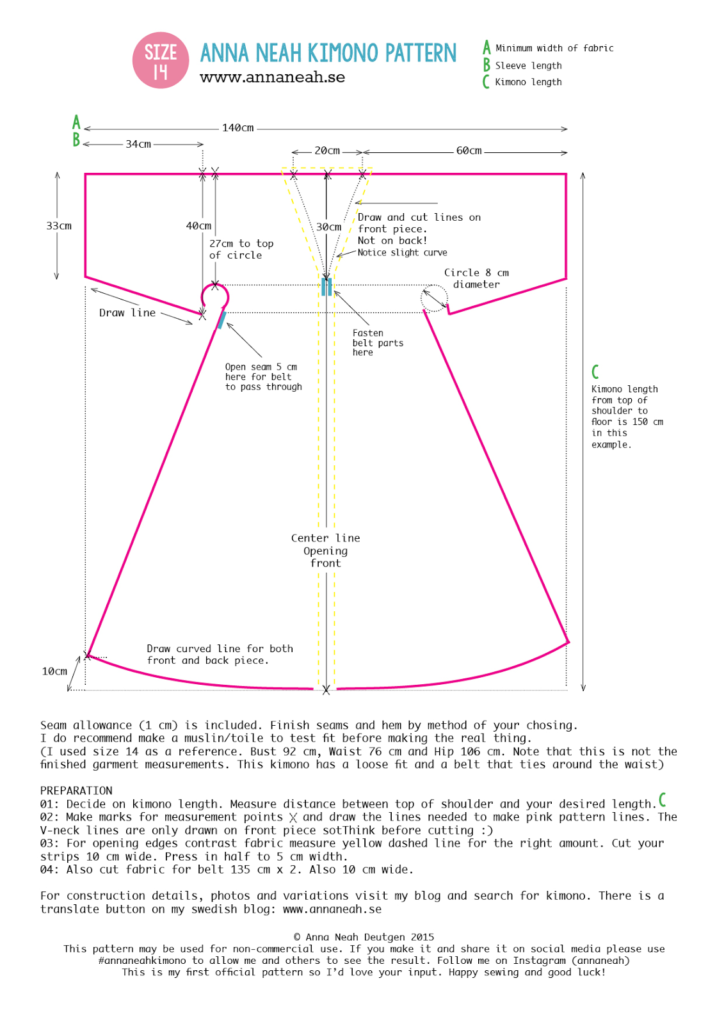 Ladda ner gratis symönster för kimono och få tillgång till detaljerade instruktioner för enkel påklädning. Perfekt för både nybörjare och erfarna sömnadsglada.